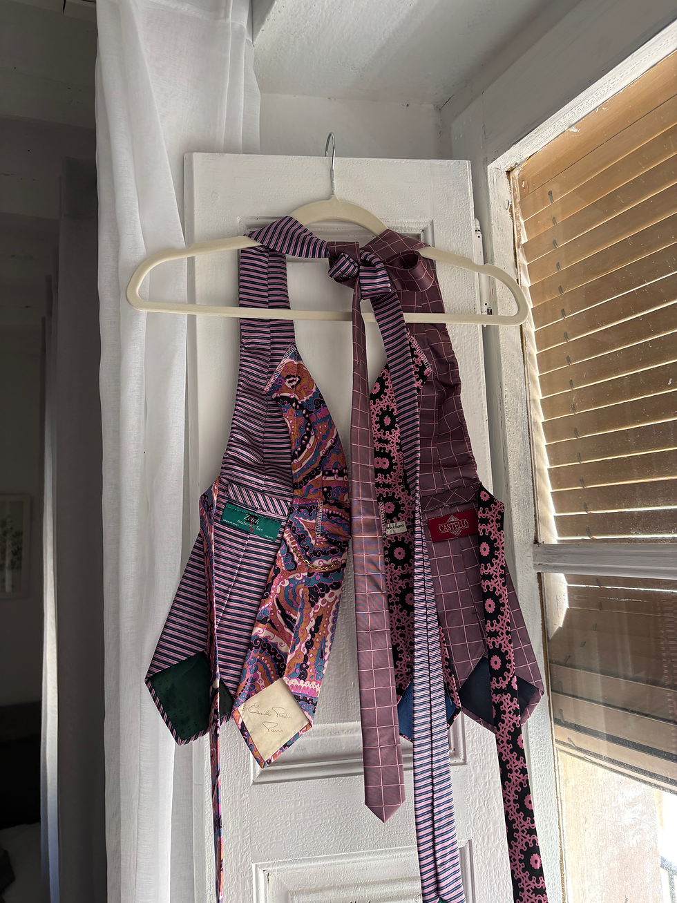 Tops confeccionados artesanalmente a partir de corbatas recicladas, cada una seleccionada para crear piezas únicas, creativas y con personalidad.